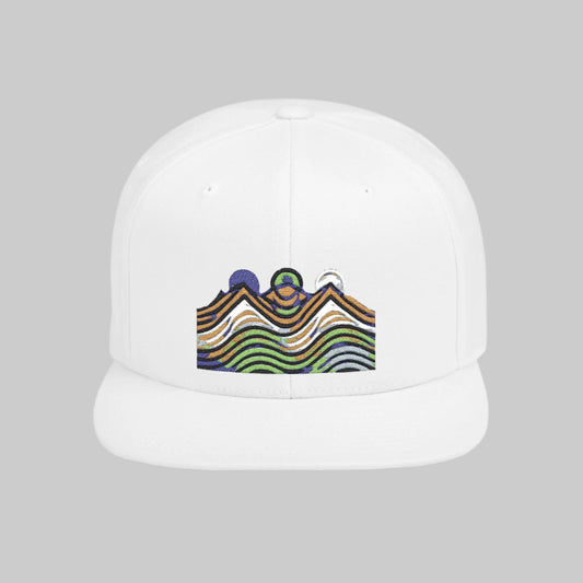 Mountain Waves Flat Bill Snapback Hat - Trendy Cap for Outdoor Lovers, Casual Wear, Hiking, Beach Days, Summer Parties